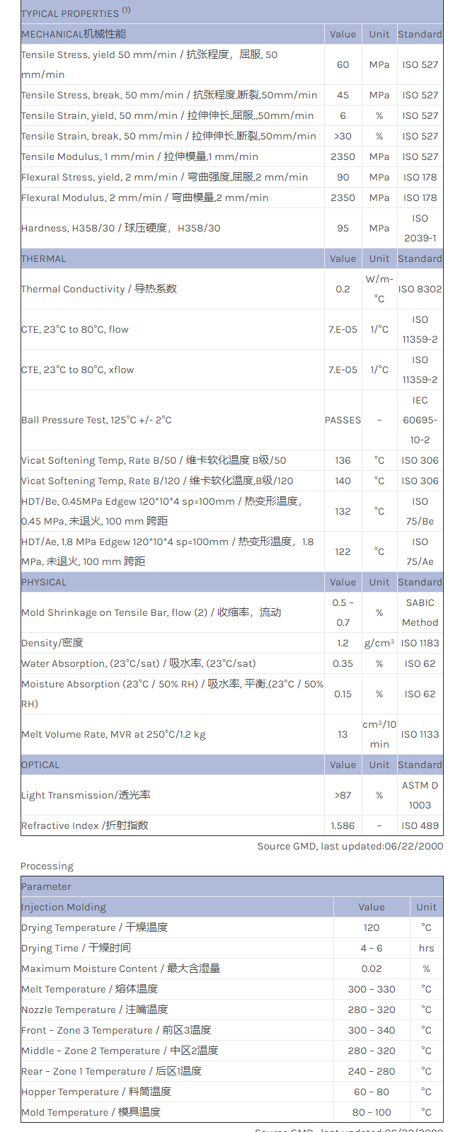 应用范围: 产品描述 LEXAN PC RL3980C物性表 LEXAN RL3980C is an optical quality grade suitable for optical media applications.
