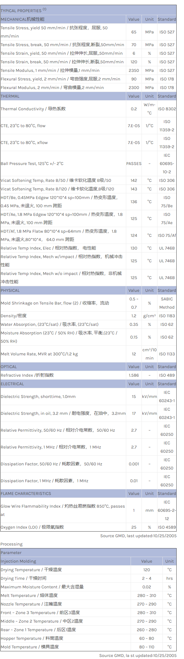 应用范围: 产品描述 LEXAN PC EXRL0152物性表 Lexan* EXRL0152 resin is a medium viscosity grade with Infra Red absorption properties. It is an excellent candidate for applications with high optical quality requiremen