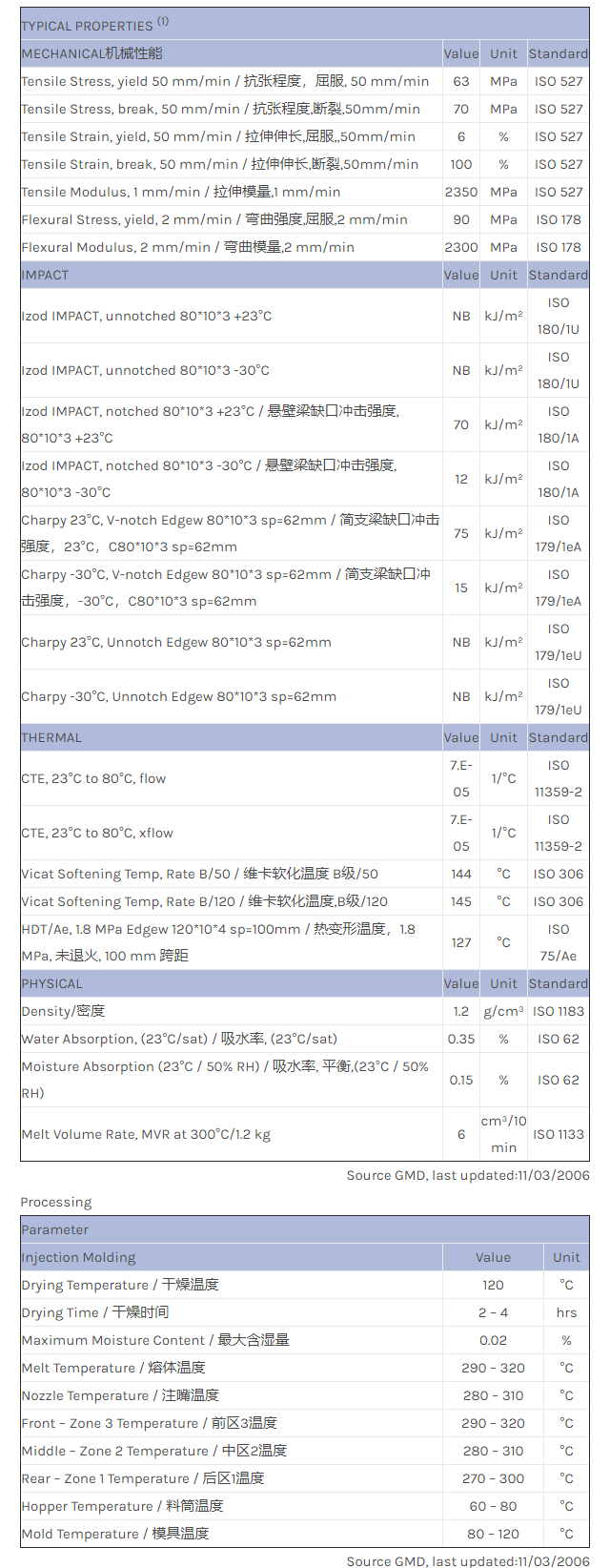 LEXAN PC 102L物性表