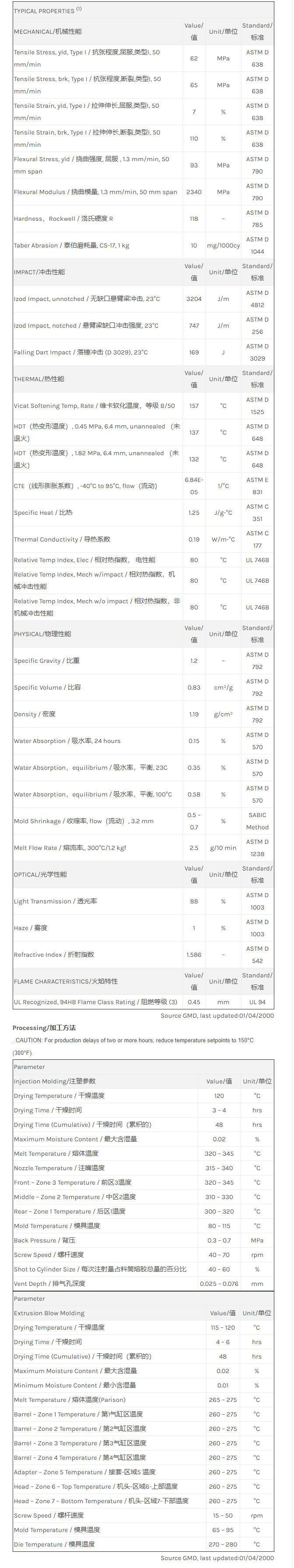 Lexan PC PK2870物性表