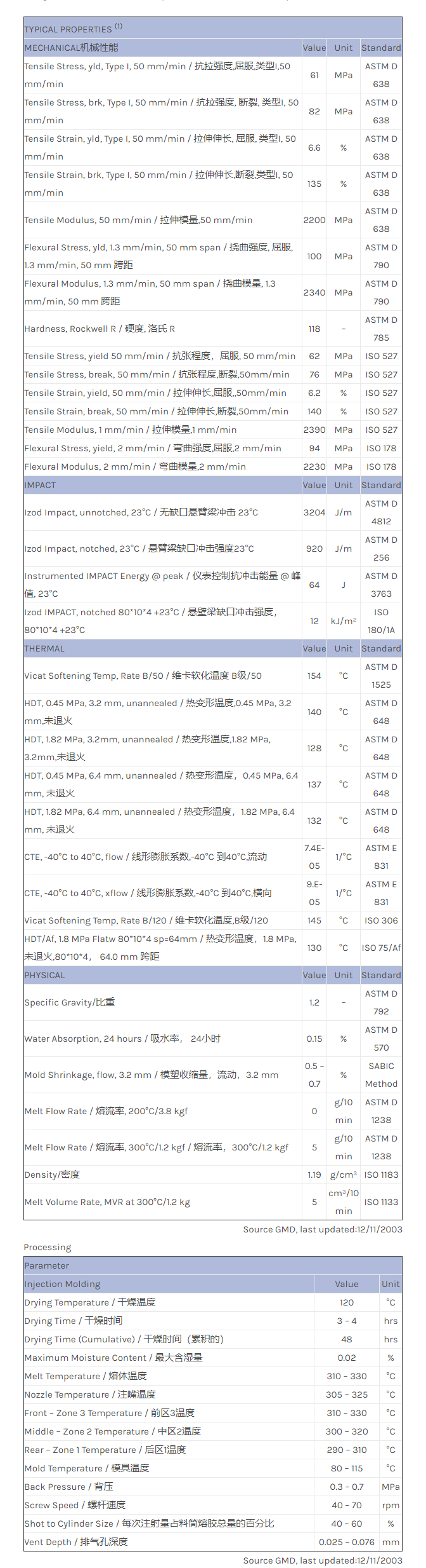 应用范围: 产品描述 LEXAN PC EXRL0095物性表 High viscosity polycarbonate resin for the Healthcare market. Suitable for EtO, steam, and gamma sterilization. Best lipid resistance of LEXAN HPS products.