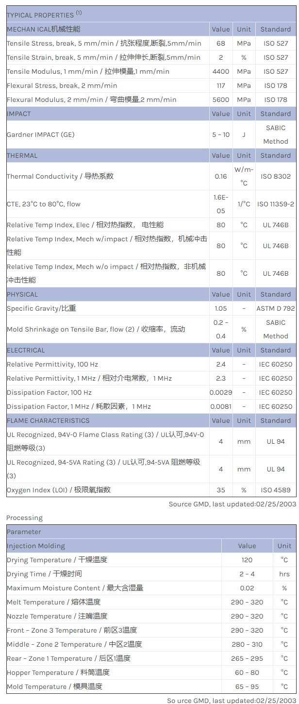应用范围: 产品描述 LEXAN PC FL930S物性表 LEXAN FL930S is a foamable grade of LEXAN polycarbonate, this 30% glass-filled material is designed for application where superior flexural and tensile characteristics are