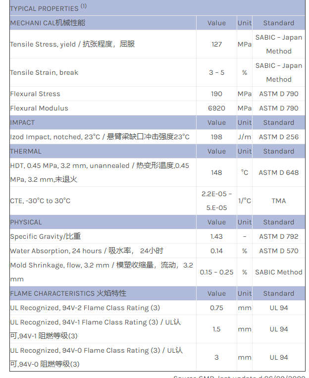 应用范围: 产品描述 LEXAN PC 3413物性表