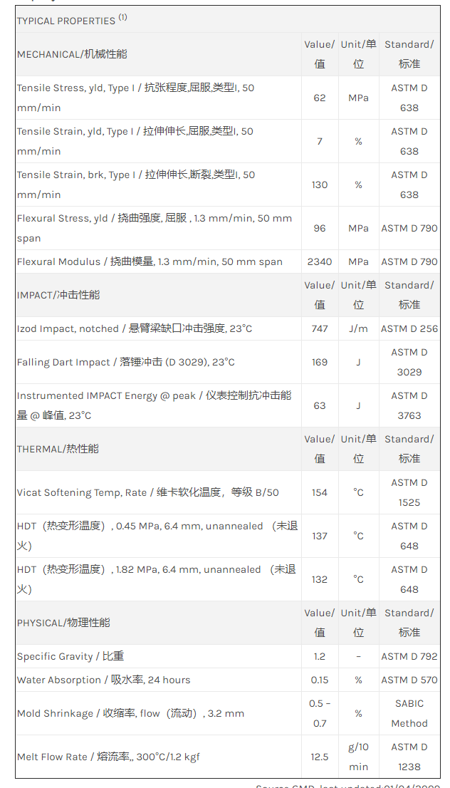 Lexan PC OQ4320R物性表
