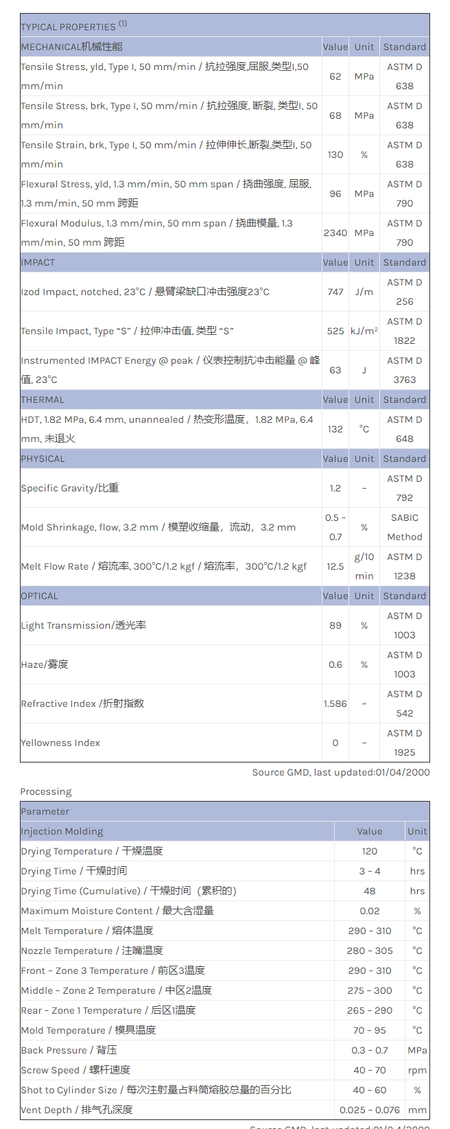 应用范围: 产品描述 LEXAN PC OQ2320物性表 视力/安全防护镜行业。OQ2xxx 系列具有所有透明色。需要专用设备、严格的生产控制条件。
