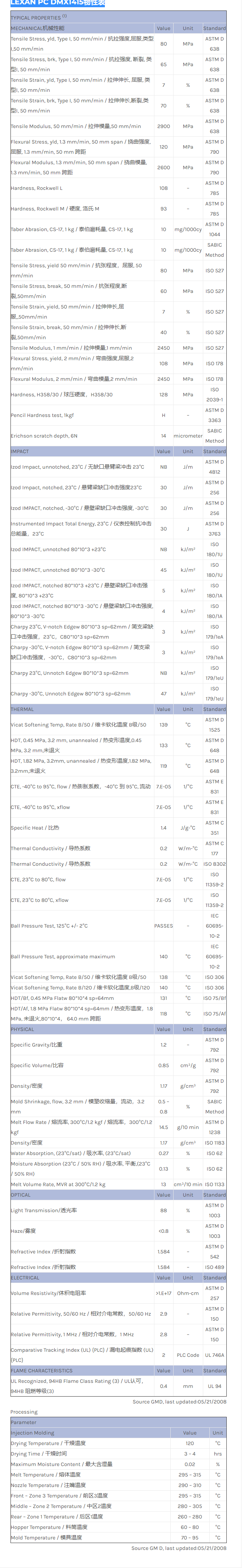 应用范围: 产品描述 LEXAN PC DMX1415物性表