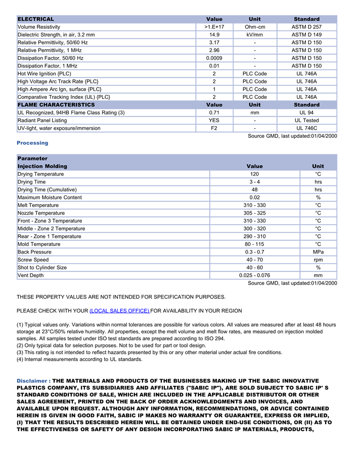 UL rated HB as of 10/97. 200 series recommended when V-2 rating required. Nonhalogenated. 7.0 MFR, for thicker sections without sinks. UV stabilized for outdoor and lighting.