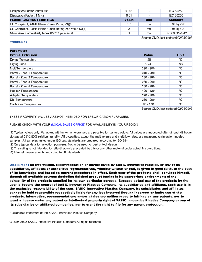 LEXAN PC EXRL0035物性表