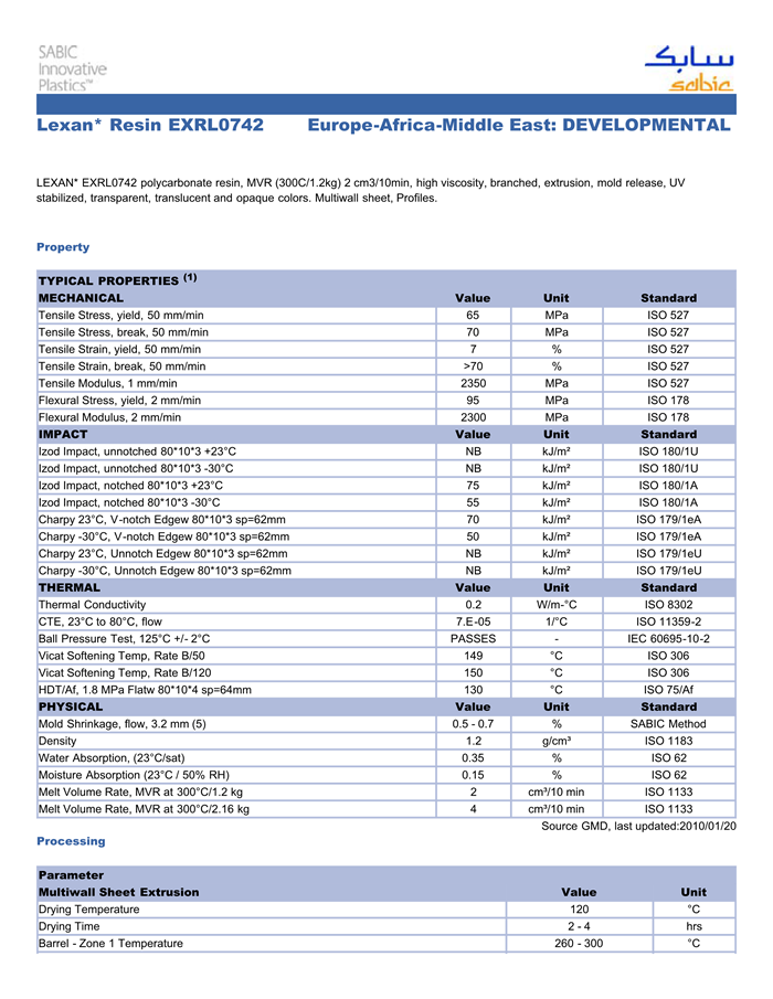 LEXAN PC EXRL0742物性表