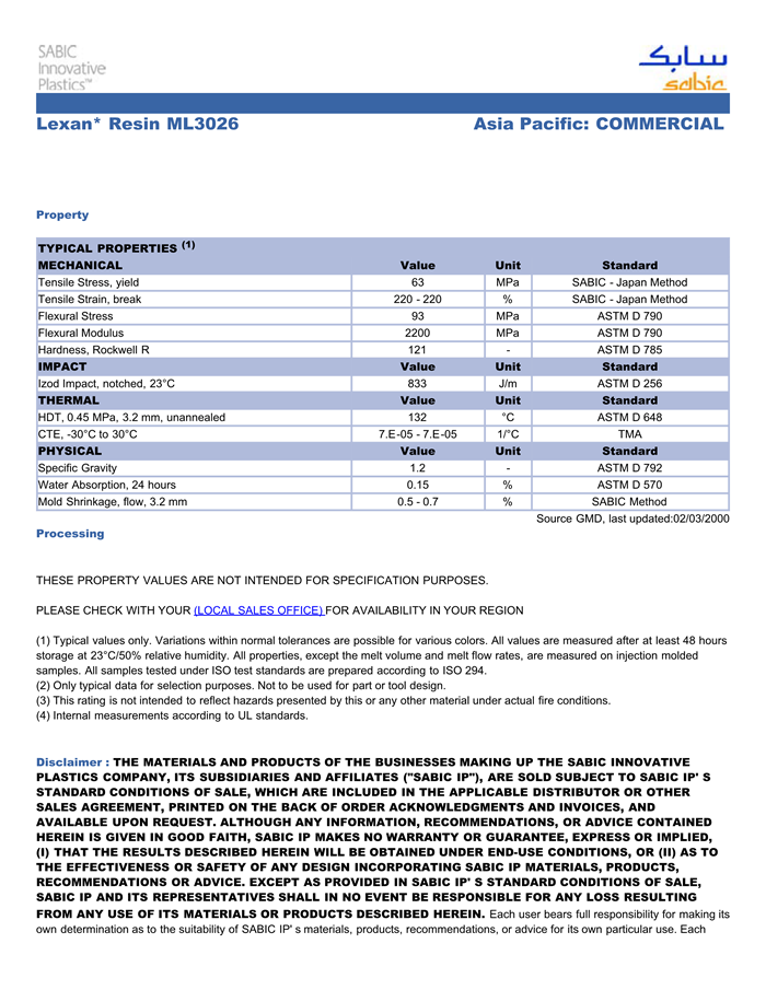 相关标签:Lexan PC 挤出,LEXAN PC ML3026,