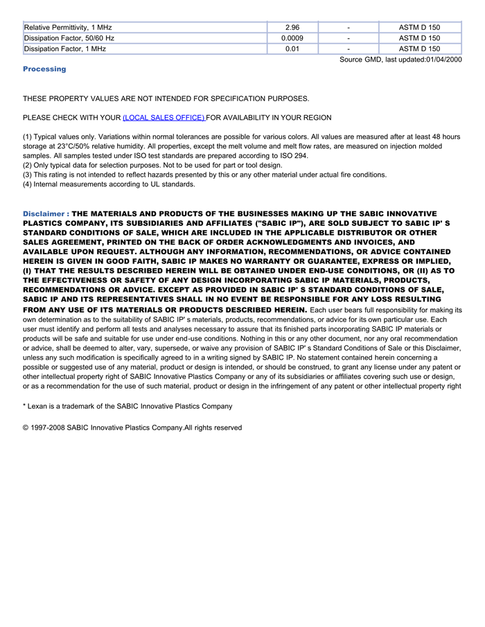 LEXAN PC 121S物性表