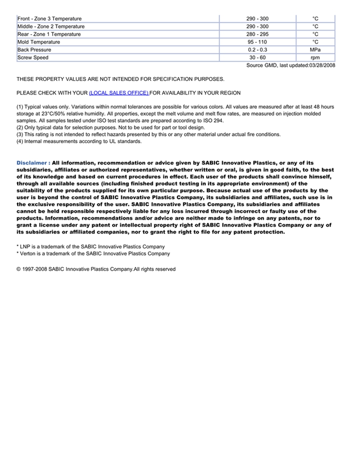 应用范围:产品描述LNP VERTON RV00AESM物性表LNP* VERTON* RV00AESM is a compound based on PA66 resin containing Long Glass Fiber. Added features include: Easy Moldin, Heat Stabilized.