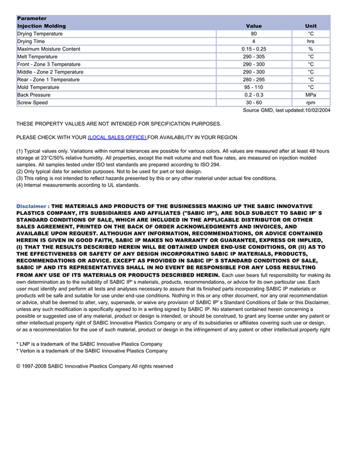 应用范围:产品描述LNP Verton RX06422物性表相关颜色色号:RX06422-BK1A818LNP VERTON* RX06422 is a compound based on Nylon 66 resin containing Long Glass. Added features of this material include: Easy Molding.Property/特性