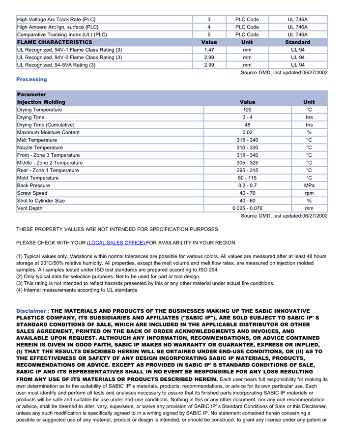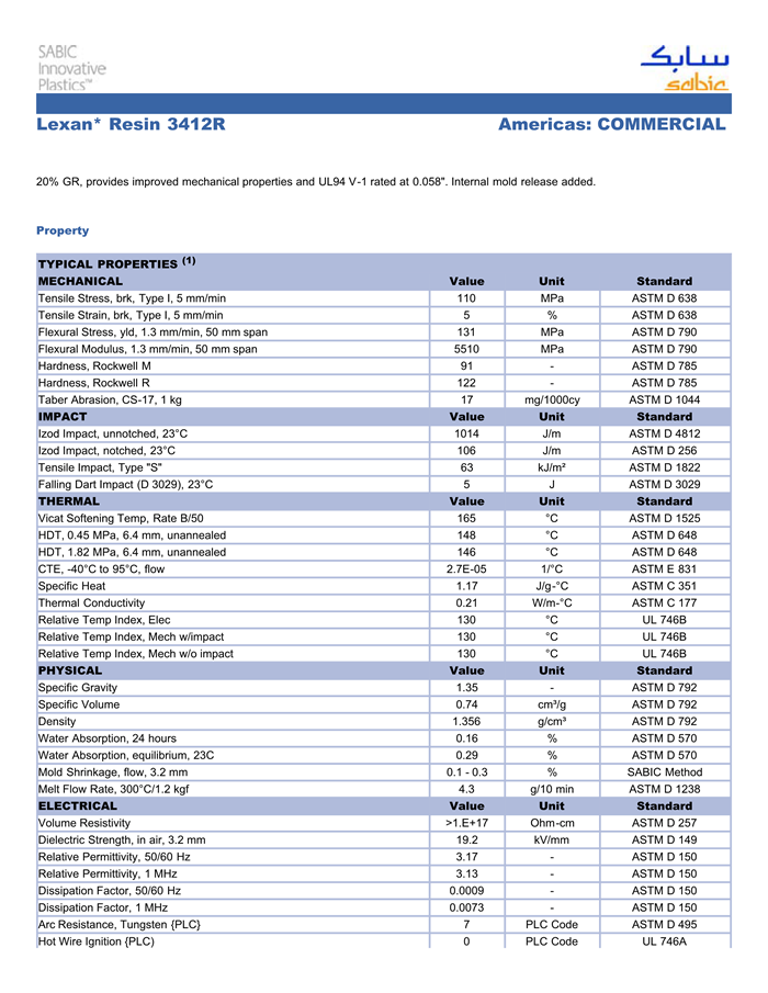 Lexan PC 3412R物性表