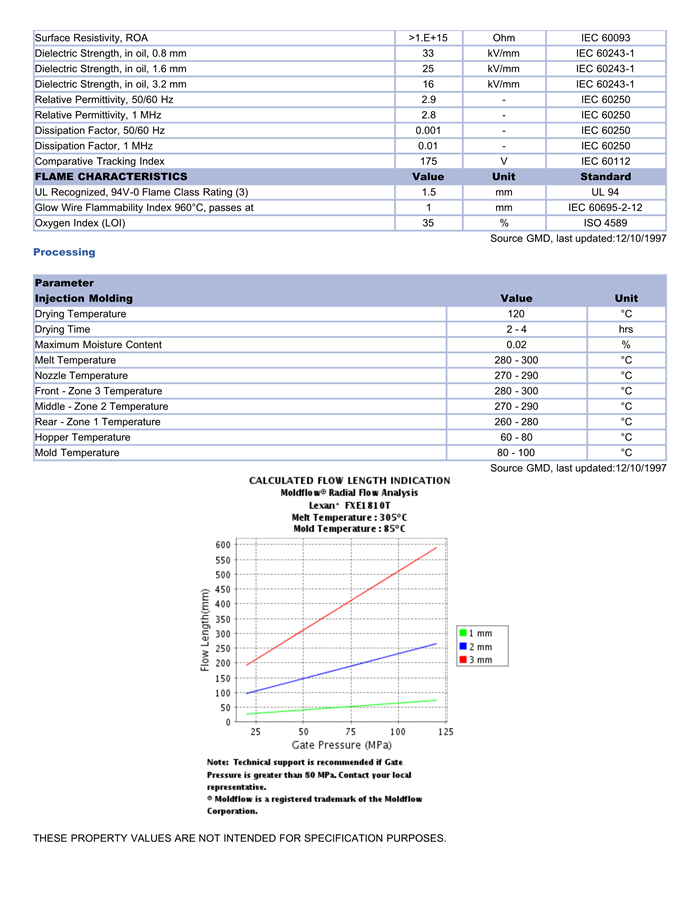 “Lexan HF500R resin是一种聚碳酸酯(PC)材料,含有的填充物为9.0% 玻璃纤维增强材料。该产品在欧洲有供货,加工方式为:注射成型。
