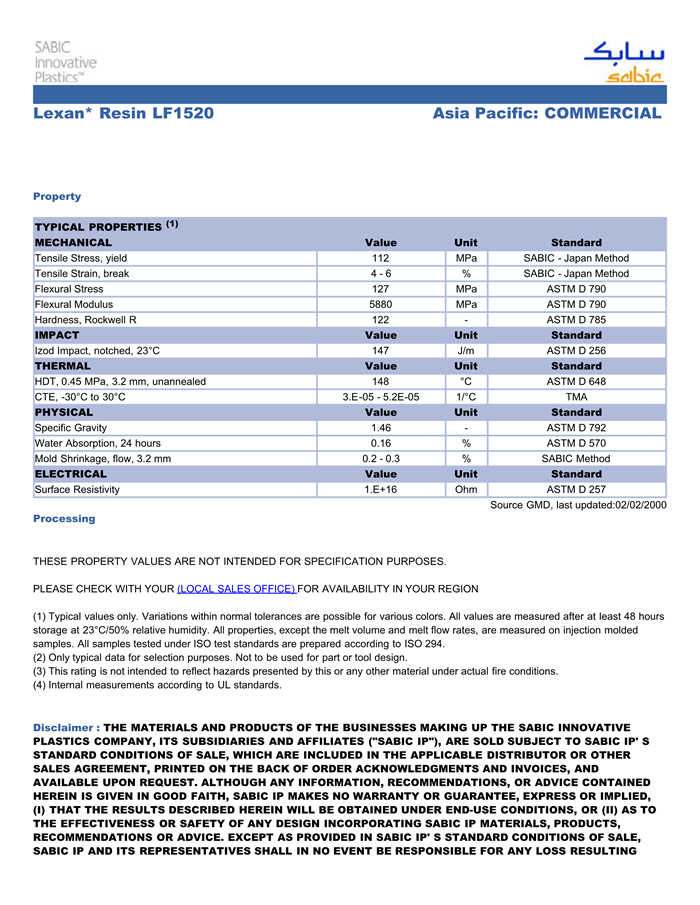 相关标签:Lexan PC 玻纤增强,LEXAN PC LF1520,