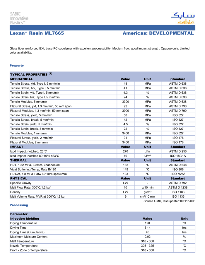 相关标签:Lexan PC 玻纤增强,LEXAN PC ML7665,