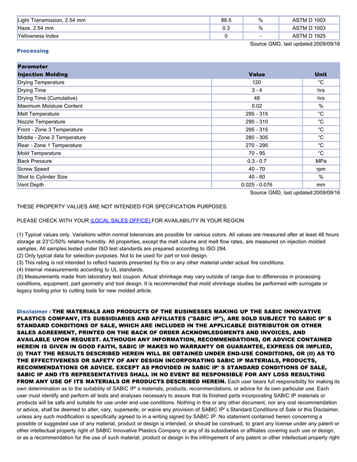 LEXAN PC EXRL0263物性表