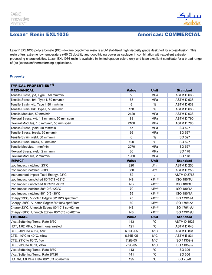 相关标签:Lexan PC 耐低温,LEXAN PC EXL1036,