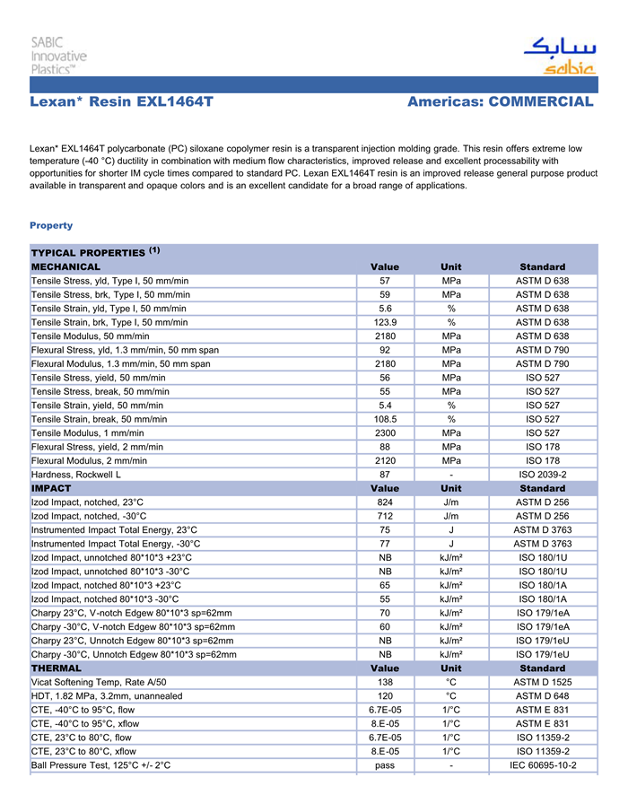LEXAN PC EXL1464T物性表