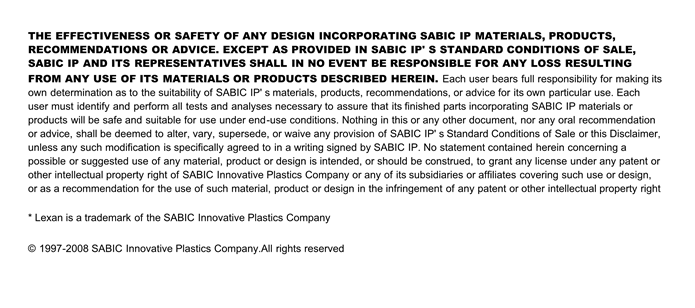 Lexan* EXL4019 is an opaque 9% Glass Fiber (GF) reinforced polycarbonate (PC) siloxane copolymer resin for injection molding (IM) applications requiring improved stiffness. This resin also offers improved ductility over conventional GF reinforced PC resins in combination with medium flow characteristics and excellent processability with opportunities for shorter IM cycle times when compared to standard PC. Lexan EXL4019 resin is a product that may be an excellent candidate for a wide variety of applications. Available in limited colors only.
