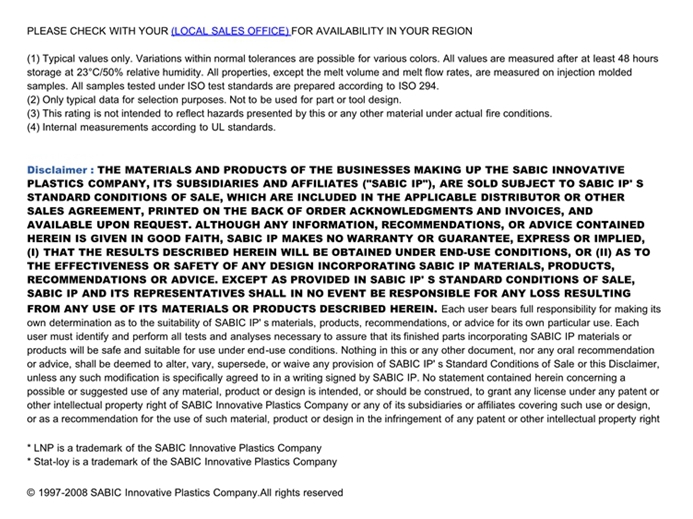 肇庆LNP STATLOY Cycolac_EXCP0057物性表