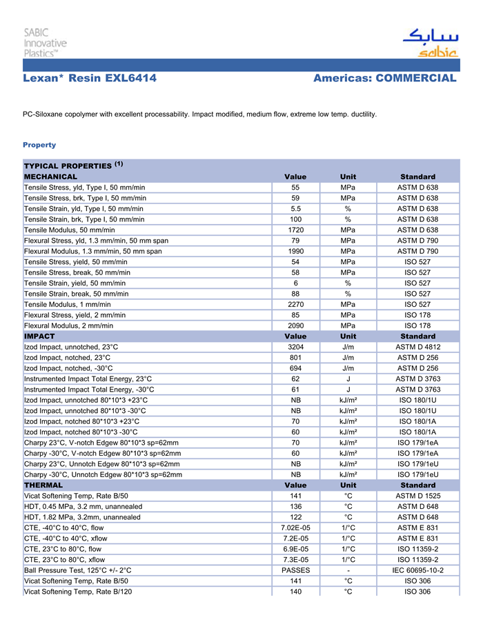 相关标签:Lexan PC 耐低温,Lexan PC EXL6414,