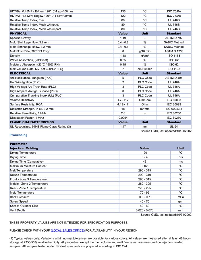 应用范围:产品描述Lexan PC EXL6414物性表-40℃延展性,冲击改良PC-Siloxane copolymer with excellent processability. Impact modified, medium flow, extreme low temp. ductility.Property/特性
