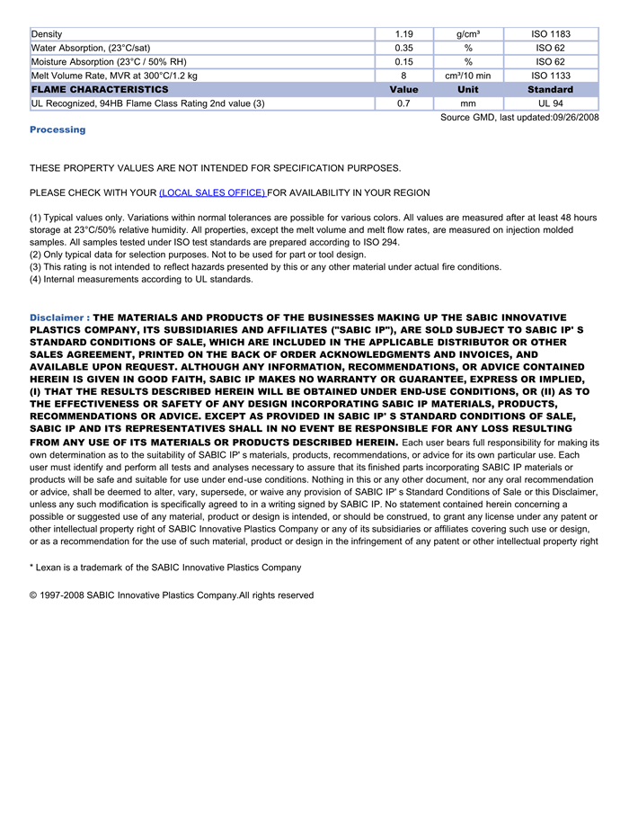 LEXAN PC EXL8414物性表