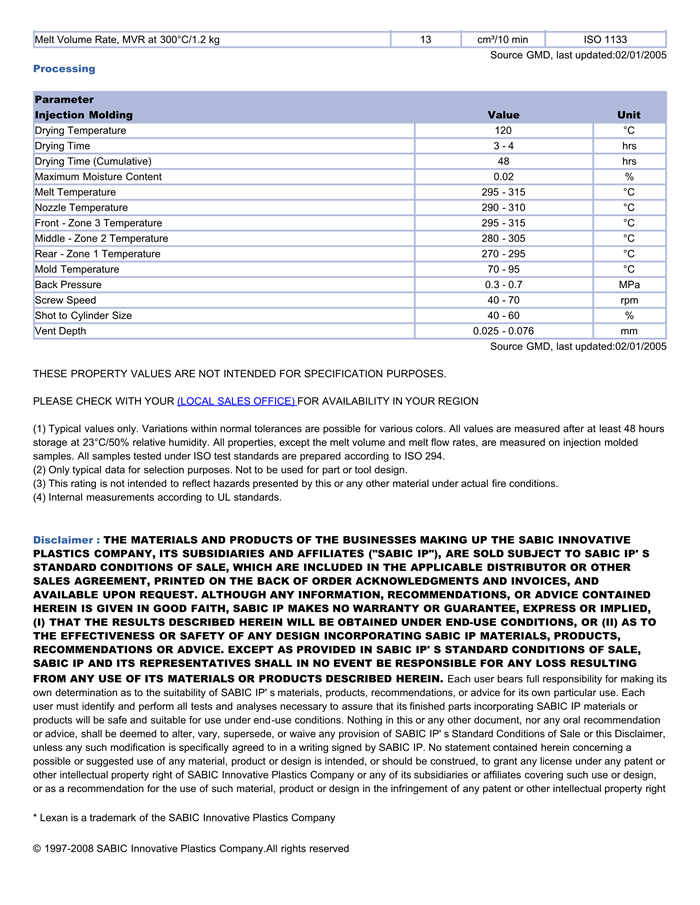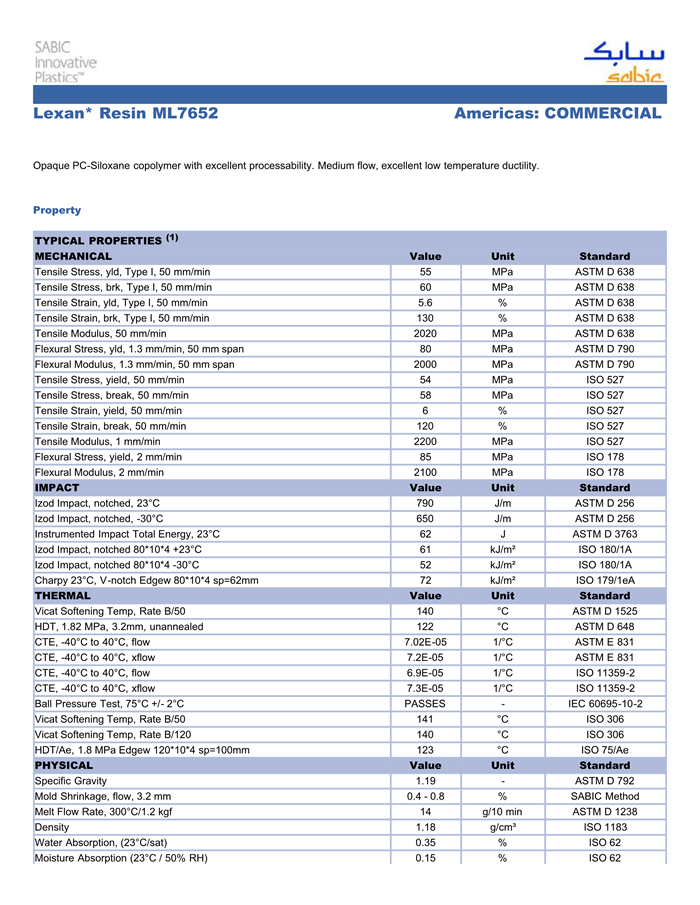 LEXAN PC ML7652物性表