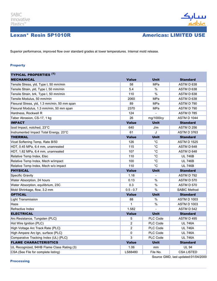 相关标签:Lexan PC 耐低温,LEXAN PC SP1010R,