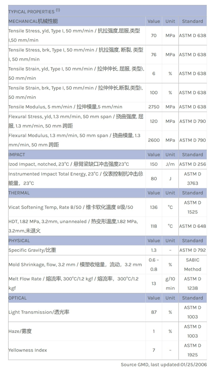 应用范围:产品描述LEXAN PC RL7577B物性表PC Copolymer, SLX Weatherable Caplayer for GE Speciality Film & Sheet.