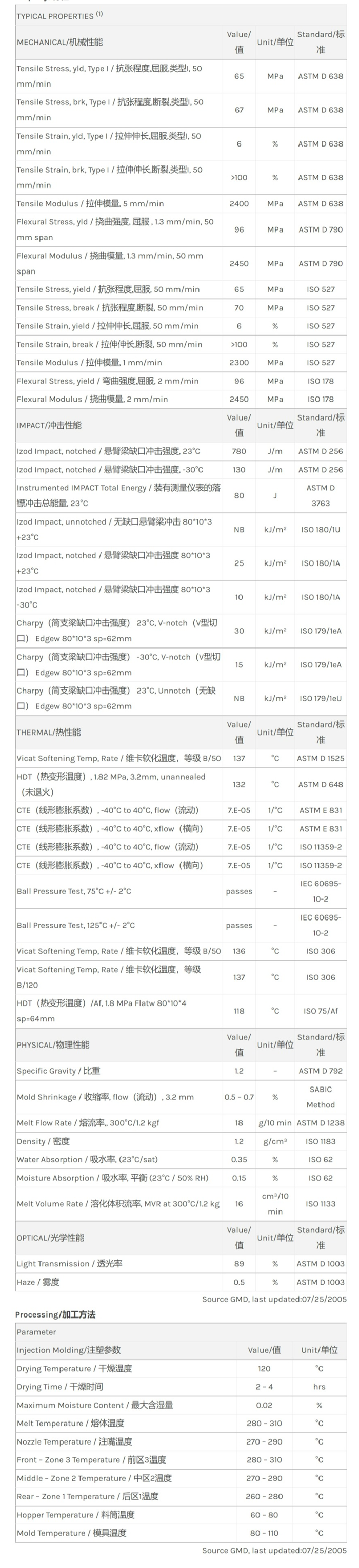“Lexan SLX1231T resin是一种聚碳酸酯(PC)材料,加工方式为:注射成型。