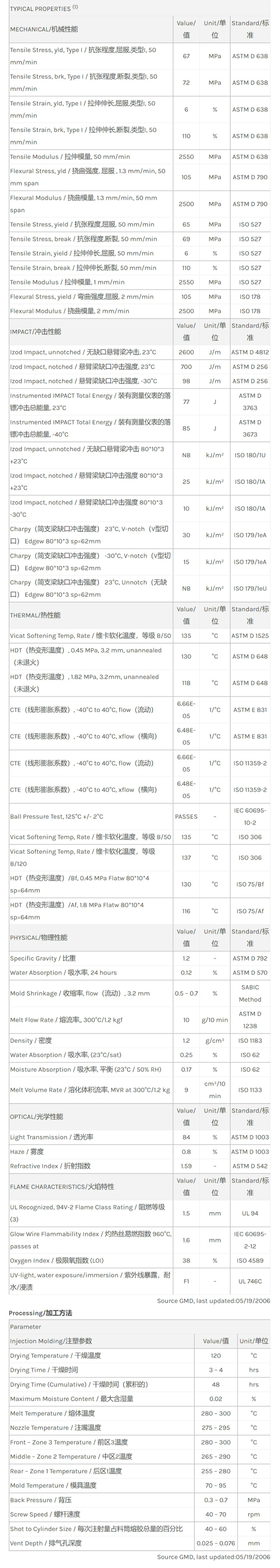 应用范围:产品描述Lexan PC SLX2432T物性表中等黏度,增强的UV稳定和脱模剂,阻燃V2,有透明和不透明颜色。相关颜色色号:SLX2432TNA9D082T、SLX2432TGY2E532T、SLX2432TBL7F025T、SLX2432TNA9B036T、SLX2432TBK1E540T、SLX2432TNA9D083TMedium viscosity PC copolymer with e