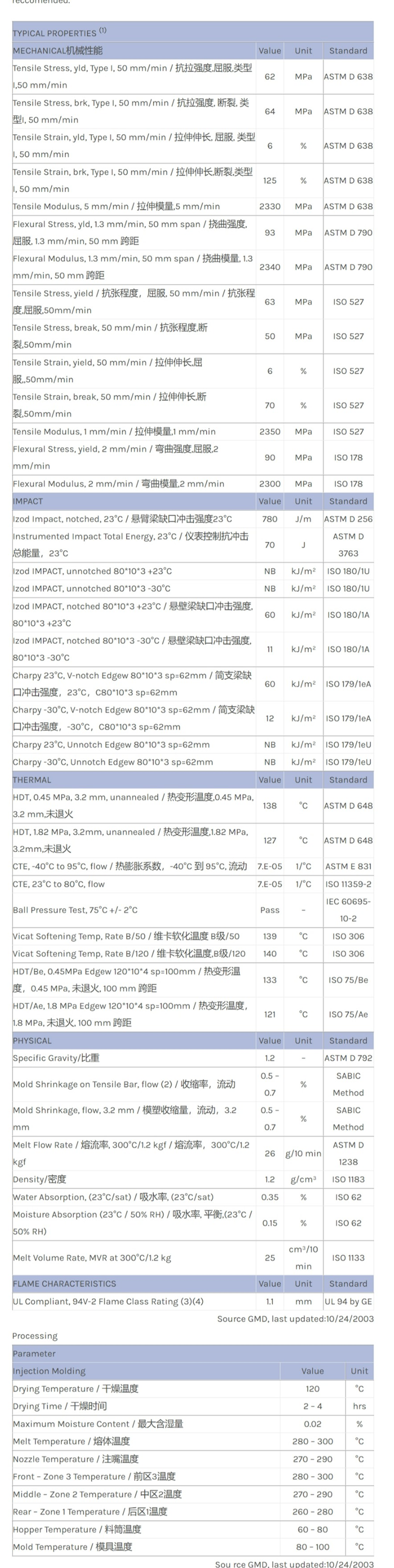 LEXAN PC FXD171物性表