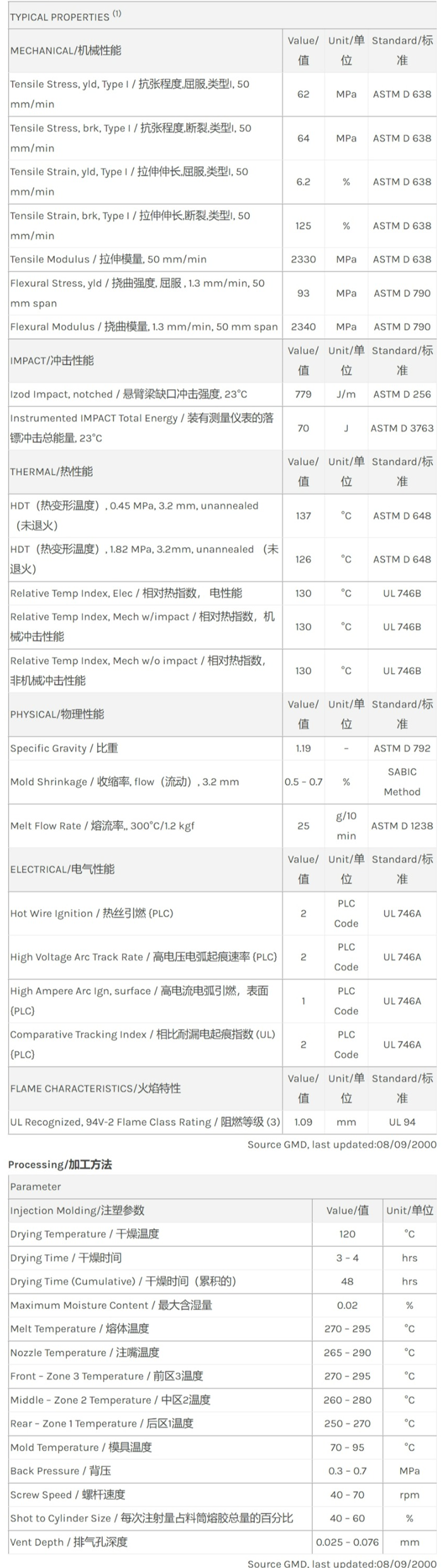 应用范围: 产品描述 Lexan PC FXE1112T物性表 “Lexan FXE1112T resin 是一种聚碳酸酯(PC)产品。可以通过注射成型进行处理。 特性包括: 高流动性 共聚物 加工性能良好 快速成型周期 柔软”。 相关颜色色号:FXE1112T-RD5G062、FXE1112T-RD4G061、FXE1112TOR4G017T、FXE1112T-GN5G065、FXE1