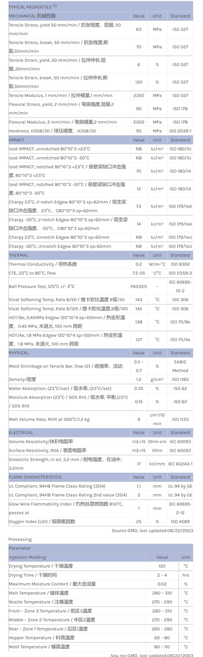 LEXAN PC FXE164R物性表