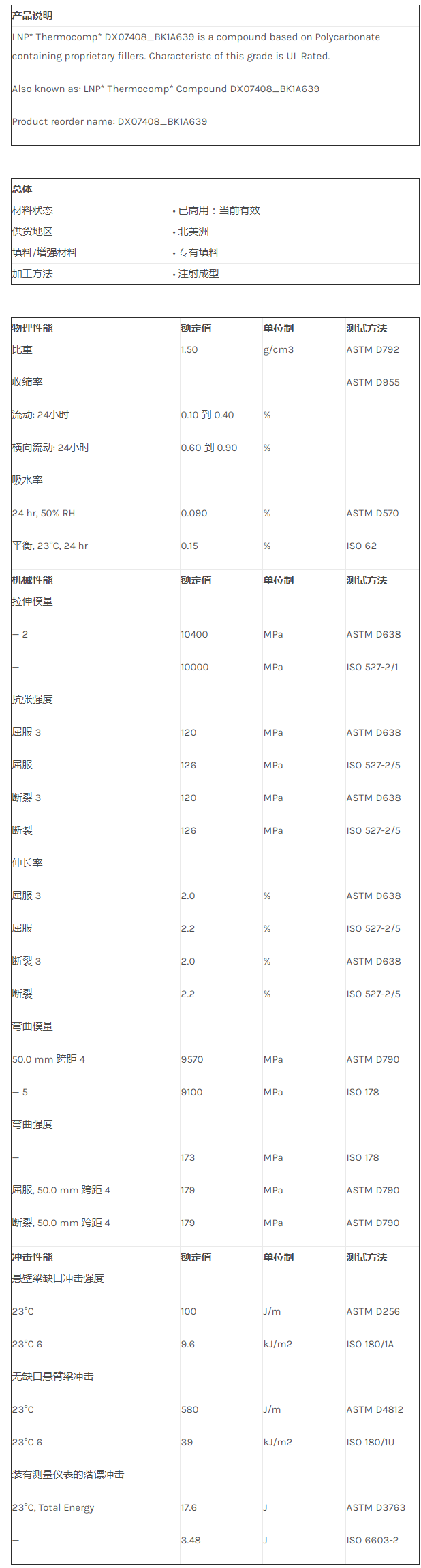 应用范围:产品描述LNP THERMOCOMP DX07408_BK1A639物性表