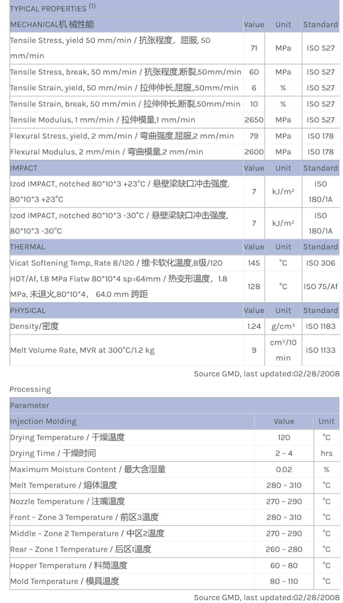 应用范围: 产品描述 LEXAN PC FXM2034物性表 LEXAN FXM2034 is a medium viscosity metallic VisualFX grade designed to pass GWI 850C at 3mm thickness]\