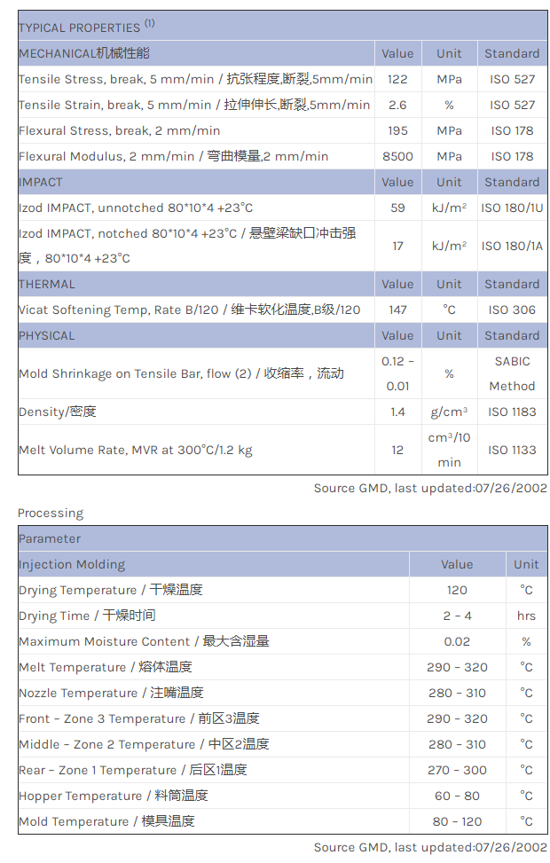 LNP* Thermocomp* Lexan_EXCP0217 compound is a 30% glass reinforced injection moulding polycarbonate resin.