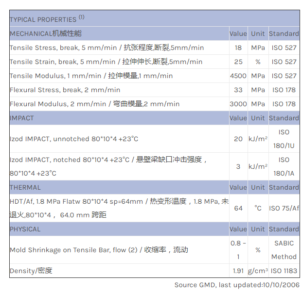LNP* Thermocomp* MH0200A is a compound based on Polypropylene resin containing High Specific Gravity/比重 Filler.