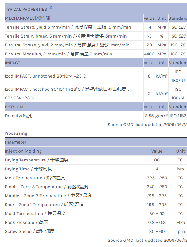 应用范围: 产品描述 LNP THERMOCOMP MH0255A物性表 LNP* THERMOCOMP* MH0255A is a compound based on Polypropylene resin containing Proprietary Filler(s). Added features include; High Specific Gravity/比重.