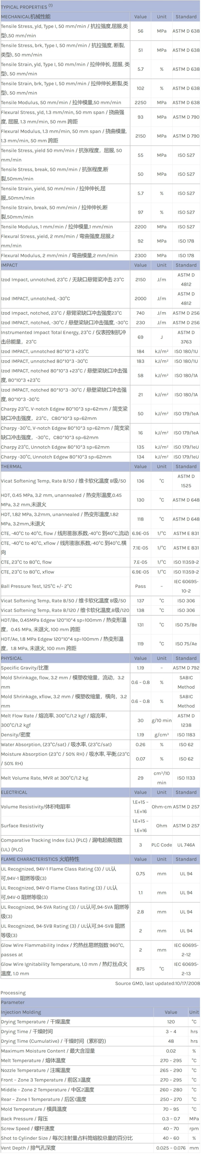 应用范围: 产品描述 LEXAN PC 905物性表 Lexan 905 resin is a high flow, opaque, flame retardant polycarbonate resin blend. It is designed with non-chlorinated, non-brominated FR systems with UL-94 listing of both V0