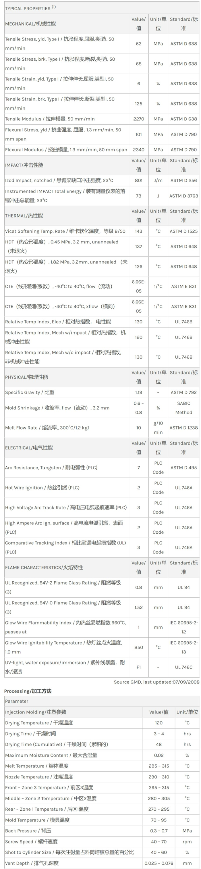 “Lexan 945U resin 是一种聚碳酸酯(PC)产品。它可以通过注射成型进行处理,且可以在北美洲中获得。典型应用:户外应用.