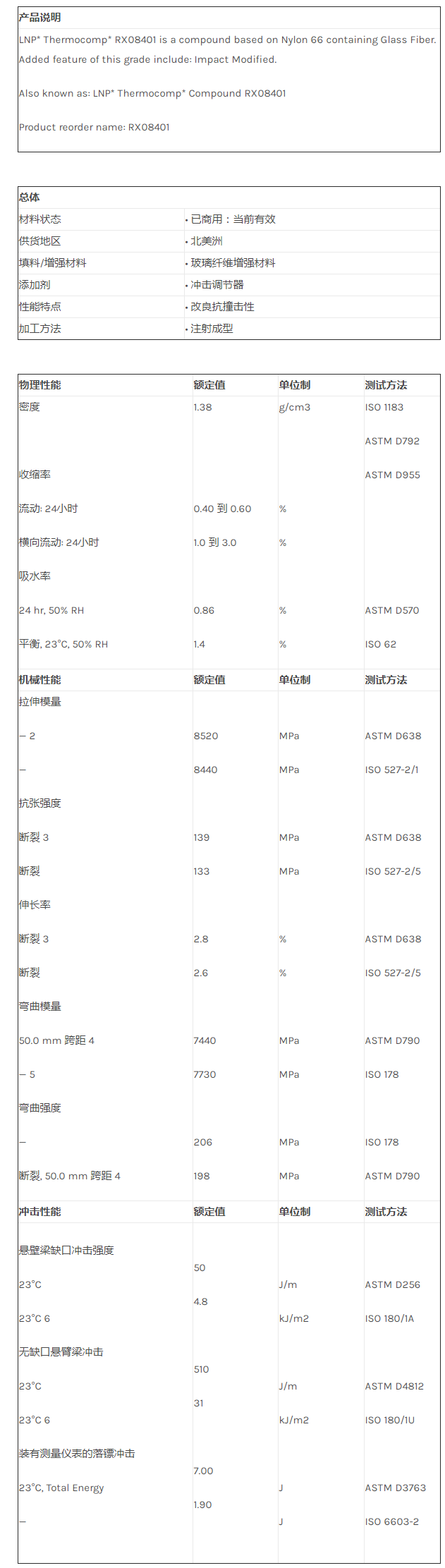 应用范围:产品描述LNP THERMOCOMP RX08401物性表