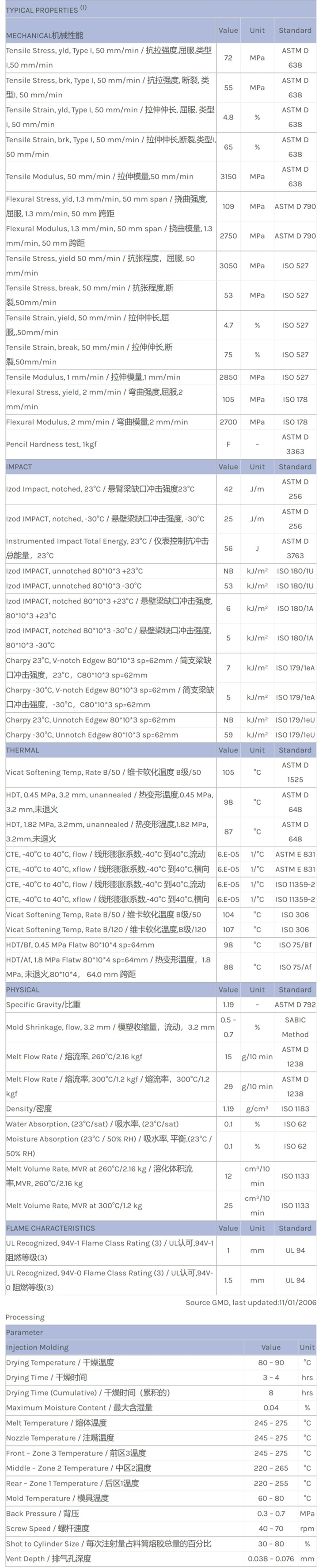 应用范围: 产品描述 LEXAN PC DMX9254物性表 Lexan* DMX9254 resin is an injection moldable PC copolymer/ABS blend. This resin combines excellent scratch resistance with high flow and ductility. It contains non-bromin