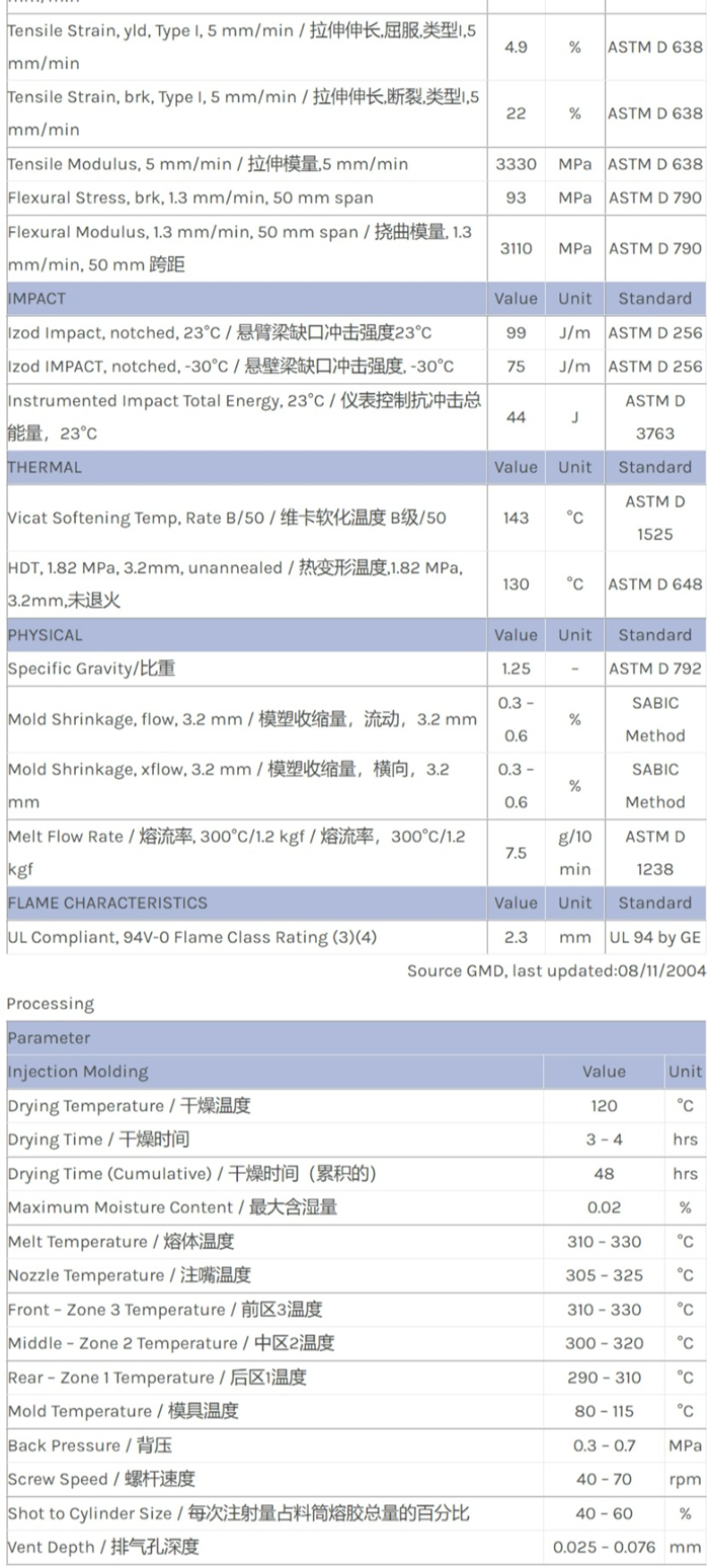 应用范围: 产品描述 LEXAN PC EXRL0135物性表 10% GF reinforced FR PC with non-brominated and non-chlorinated FR systems.