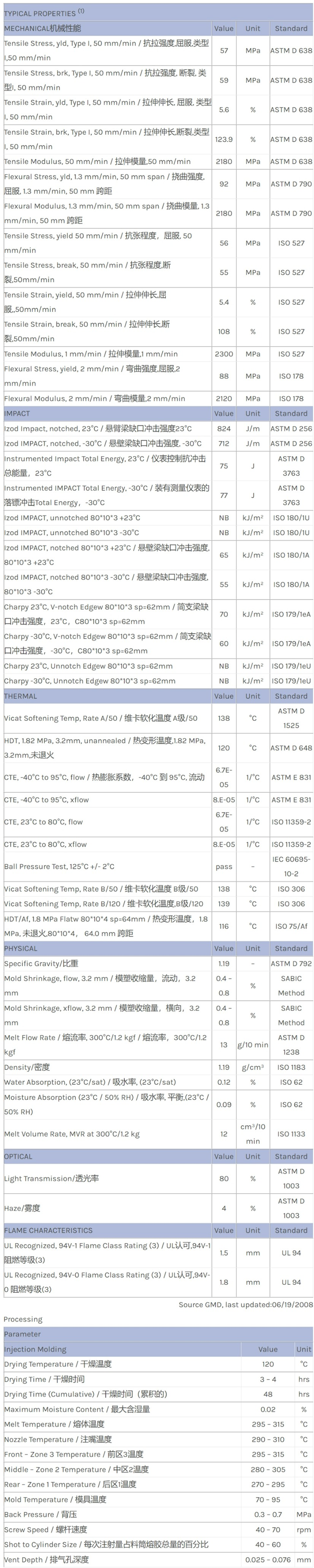 LEXAN PC EXRL0611物性表