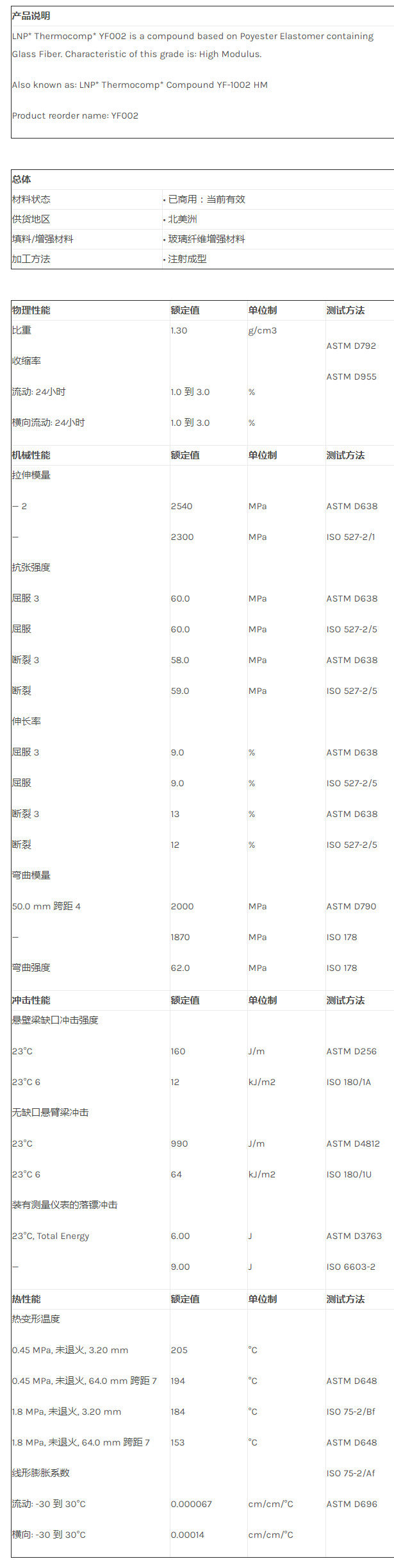 应用范围:产品描述LNP THERMOCOMP YF002物性表