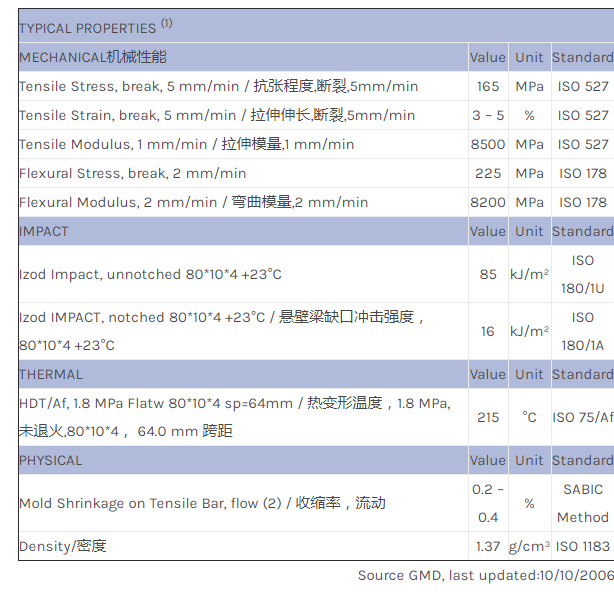 应用范围:产品描LNP THERMOCOMP PF006ES物性表Hydrolysis Resistant Nylon 6 compound containing Glass Fiber.